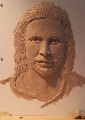 I have a commission to carve a Jesus bust in relief. I made it in clay first so the client can see what it is going to look like.