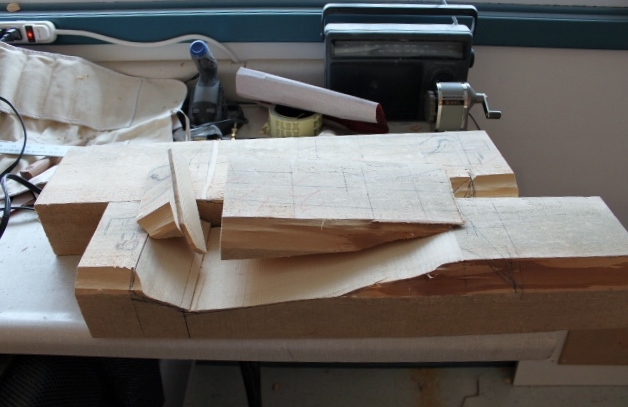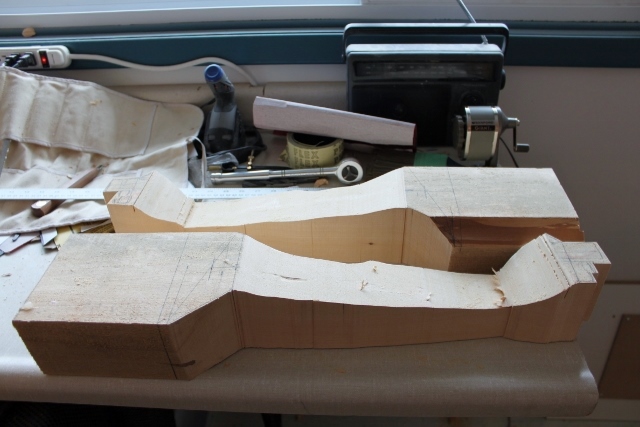I drew the front and side profile on the wood. I cut the side profile first on the band saw. I didn’t cut anything on the back of the arm because it doesn’t have much of a profile and it is nicer that it is flat so clamping it to the bench is easier.