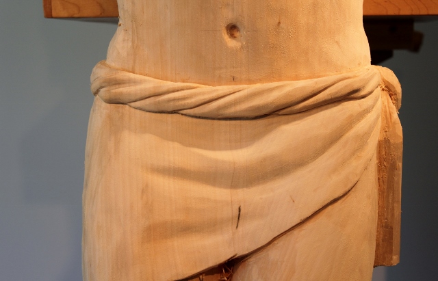 I started to work on the cloth around Jesus’s waist. I really enjoyed working on the rolled up part of the cloth to shape it and give it the look of cloth. I am anxious to work on the knot but I have to make sure the leg is the right size and shape before I can work on it.