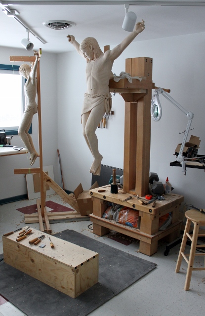 Andy – I just finished reading your blog and looking at the pictures of the crucifix and all I can say is that you are truly a gifted artist. I will be so proud to have this carving in our church.